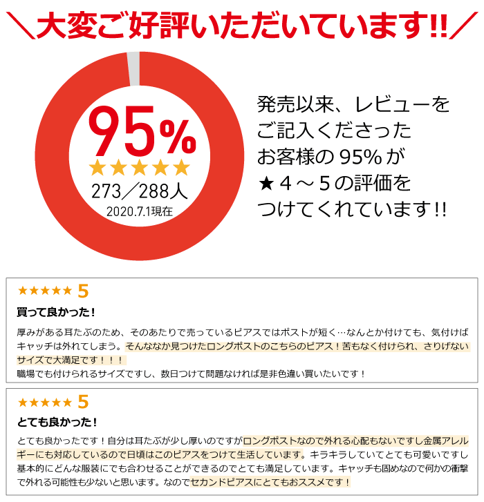 なのに、輝きや艶感はぜんぜん安っぽくなく ダイヤモンドに勝るとも劣らないと 自負しています! さらに、当店はすべて1個ずつバラ売りなので 万が一無くしても、片方だけ購入すればOK。